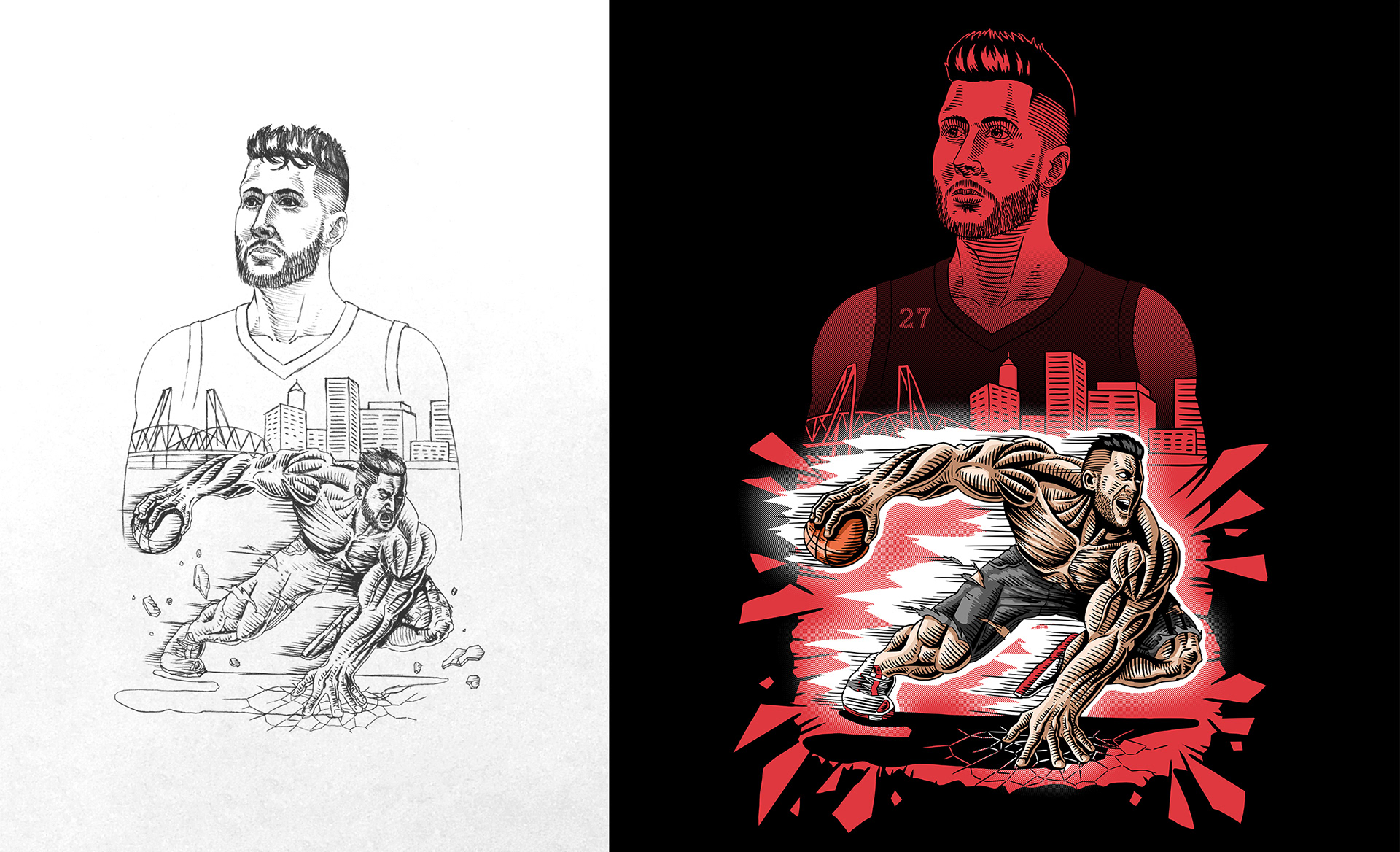 Over the last few years, I've gotten the opportunity to work with Working Ostrich on some custom illustrations for Jusuf Nurkic, Bosnian-born Center (